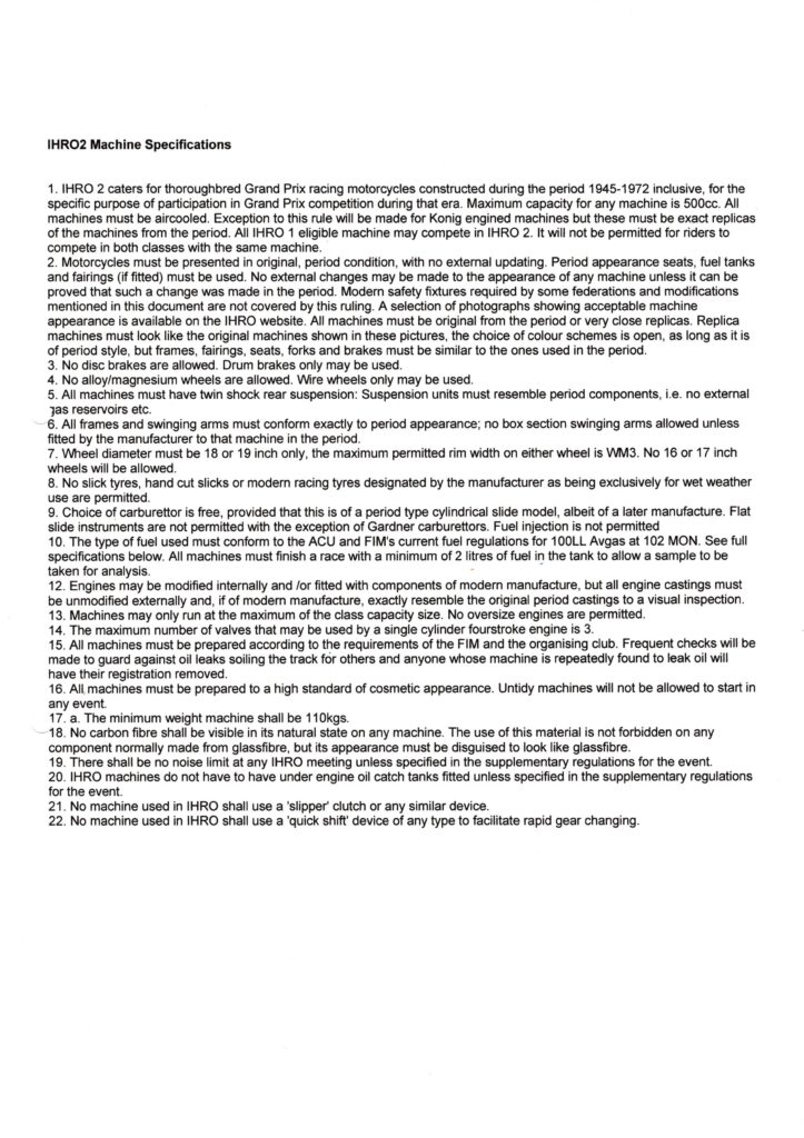 IHRO reglementet som stillede krav til originalitet er gengivet nedenfor for de to klasser.